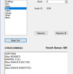 The aim was to design, develop and manufacture a robotic system that could dispense “snacks” (in this case, the snacks were LEGO Duplo bricks) with the idea being that a student could dispense snacks using a card which would let the machine know if they had any allergies, which would prevent the user from dispensing a “snack” with their given allergy. In our case, each duplo brick was a different colour, and each colour would represent an allergy.